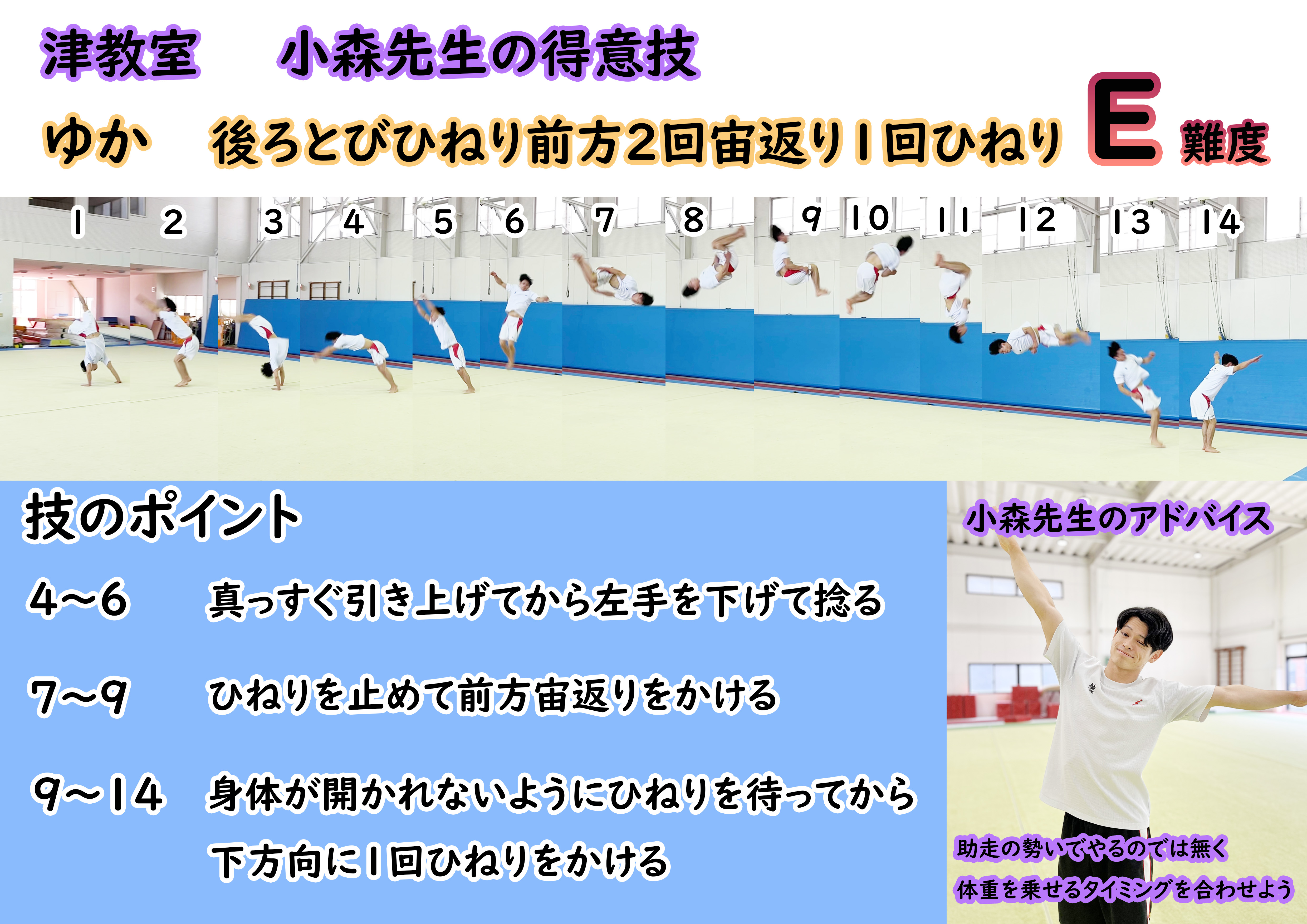 後方抱え込み2回宙返り後方2回ひねり後方3回ひねりタマヨ後ろとびひねり前方屈身2回宙返りひねり