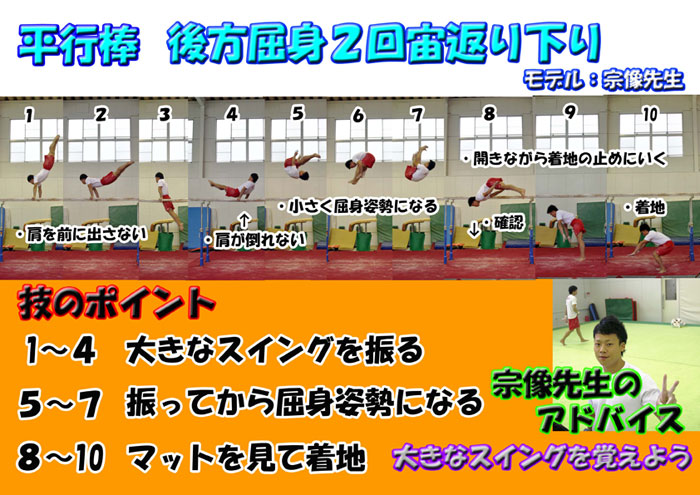 屈身ダブル平行棒・技名一覧スイング棒上宙返り倒立バブサー車輪ディアミドフ車輪宙返り下り車輪前宙開脚腕支持アームスイング棒下宙返りひねり倒立モリスエハラダ屈身ダブル横向き逆上がり1/4ひねり倒立宙返り下りツイストシャルロヒーリー棒下倒立ライヘルト前方2回宙返り下りアームツイストピンココロレフツイスト【比較】前振り1/4ひねり単棒倒立前方2回宙返りひねり下りマク―ツヒーリー【比較】ディアミドフ【比較】後方屈身2回宙返り下り【比較】前振り【比較】シャルロ~単棒ヒーリーバブサー後ろ振り上がり前方屈身宙返り支持バウマンギャッツン棒下宙返りひねり倒立【比較】棒下振出し腕支持~後ろ振り上がり開脚入れ伸腕支持~しんぴ倒立ベーレベーレ車輪ディアミドフティッペルト種目一覧