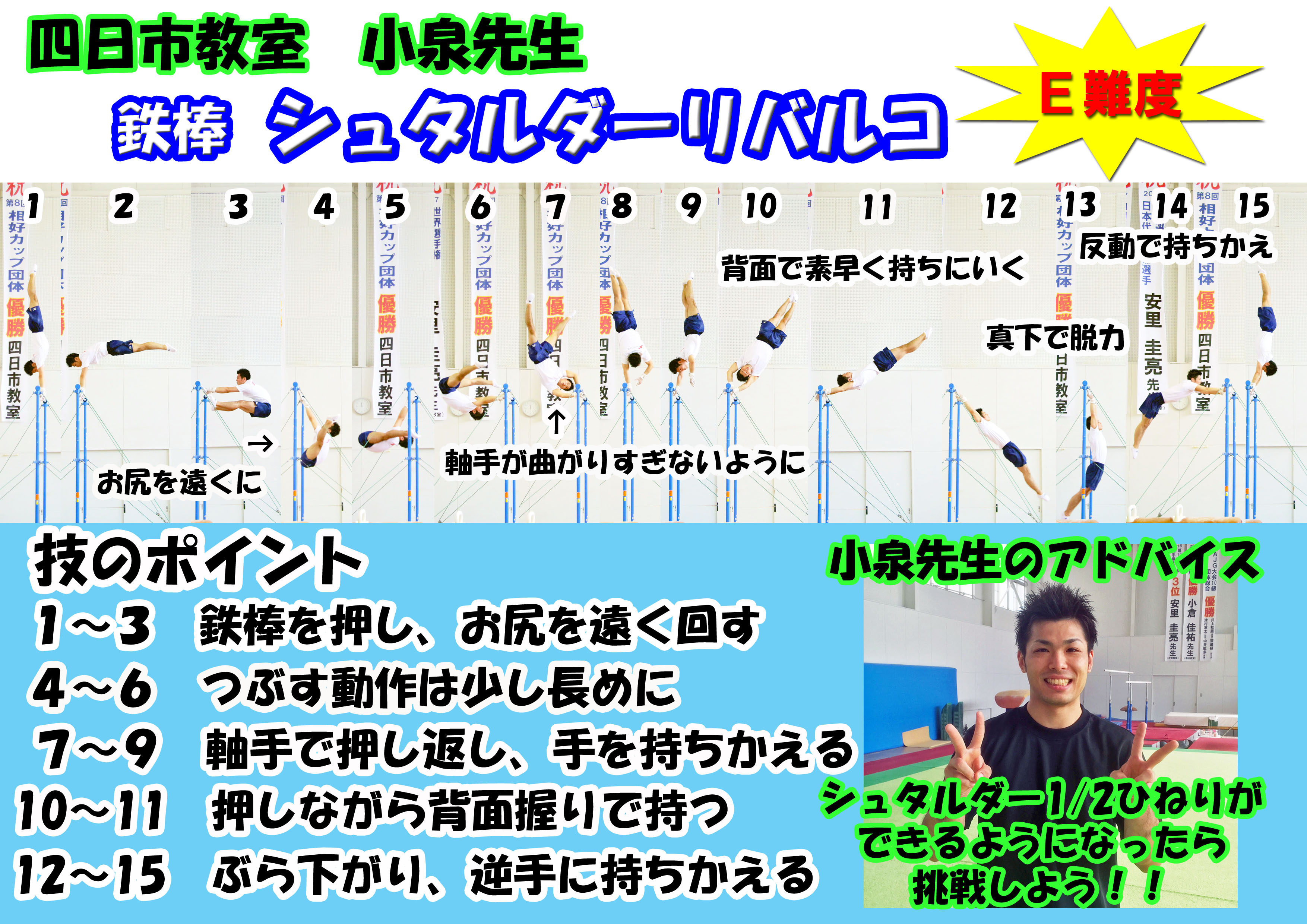 シュタルダーリバルコ鉄棒・技名一覧け上がり支持スイング~後ろ回り&ともえ順手車輪スイング抱え込み宙返り下り背面イエーガーカッシーナ伸身ピアッティヤマワキモズニクシュタルダーコバチアドラーひねり倒立ツイスト~移行コールマン逆上がり&両足逆上がり伸身ムーンサルトエンドーアドラーひねり倒立~伸身トカチェフホップターンアドラー~背面車輪シュタルダーホップターンコスミックハーフ屈身コバチシュタルダーリバルコリバルコシュタルダー【比較】ホップターンハーフヤマワキ【比較】シュタルダーひねり大逆手ツォリミンアドラーひねり倒立【比較】ワイラー伸身ムーンサルト【比較】伸身コバチアドラー1回ひねり両逆手倒立チェコ式車輪閉脚シュタルダー伸身2回宙返り2回ひねり下り屈身トカチェフ伸身2回宙返り下り伸身トカチェフ後方片手車輪とびツイストとびツイストアンドリアノフリューキンカッシーナ種目一覧